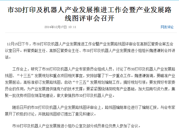 市3D打印及機器人產業發展推進工作會暨產業發展路線圖評審會召開