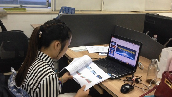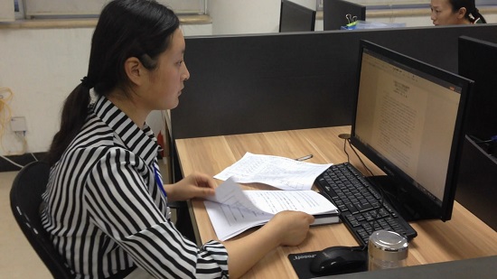 (業(yè)務(wù)部劉丹丹正專心致志對比、審核相關(guān)資料)