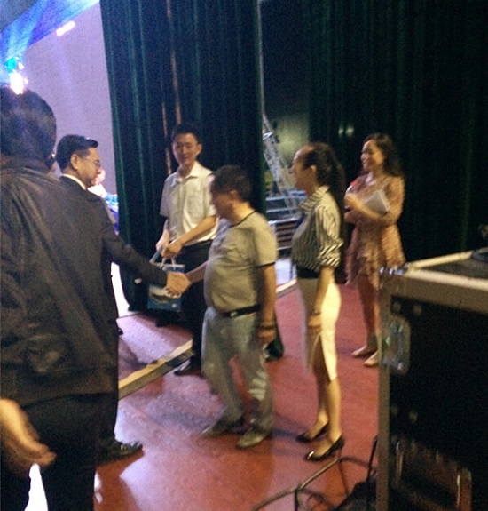 會議結(jié)束后,何思文副市長(左二)與廖藝徽董事長(右三)握手,充分肯定并贊揚科源科技公司為大會的貢獻。