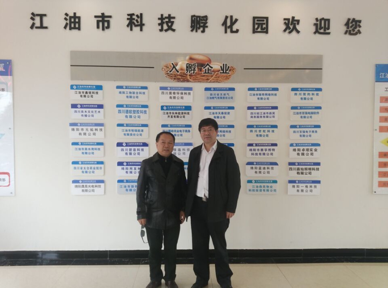 廖董事長與張宏副司長在江油市科技孵化園親切合影留念