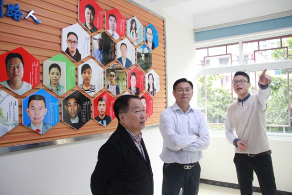 廖董事長向何市長一行介紹了創客空間的運營模式、入孵企業、以及目前的運作情況。隨后陪同何副市長一行實地考查入孵企業情況。
