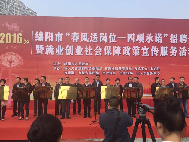 3月18日上午,江油科技孵化園受邀參加由綿陽市人民政府主辦,市人社局、扶貧移民局、總工會、婦聯、殘聯、就業局、社保局、人才服務中心等單位聯合承辦的“春風送崗位—四項承諾”招聘會暨就業創業社會保障政策宣傳服務活動在市人民公園文化廣場舉行。