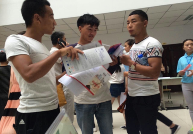 多名機電技術應用專業的畢業生咨詢孵化園入孵企業提供的焊工、鉗工崗位,與孵化園工作人員交談了解工作地點、待遇及工作性質后,投了個人簡歷,并填寫應聘人員登記表。