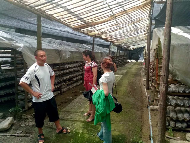 圖二:參觀香菇養(yǎng)殖基地