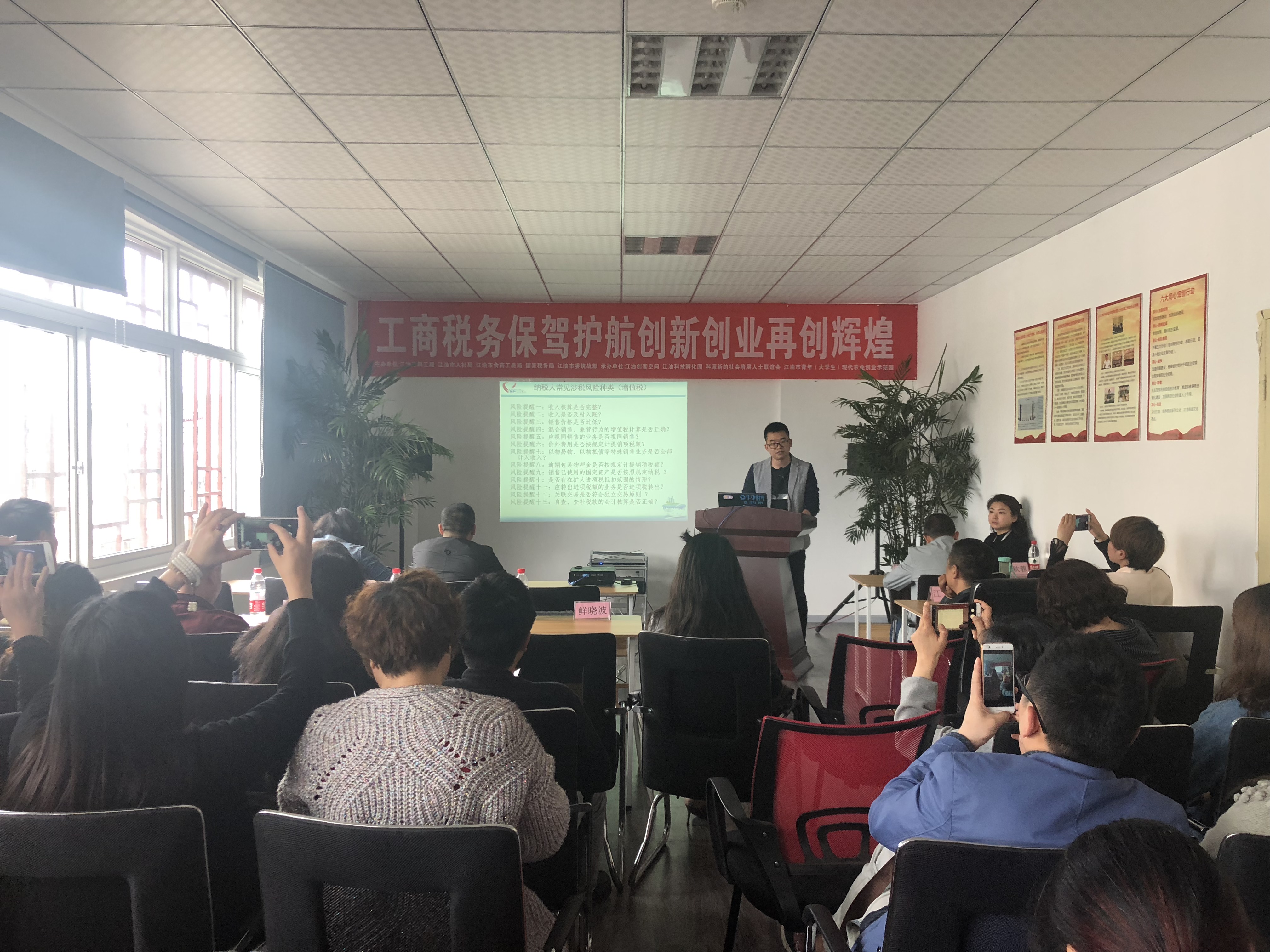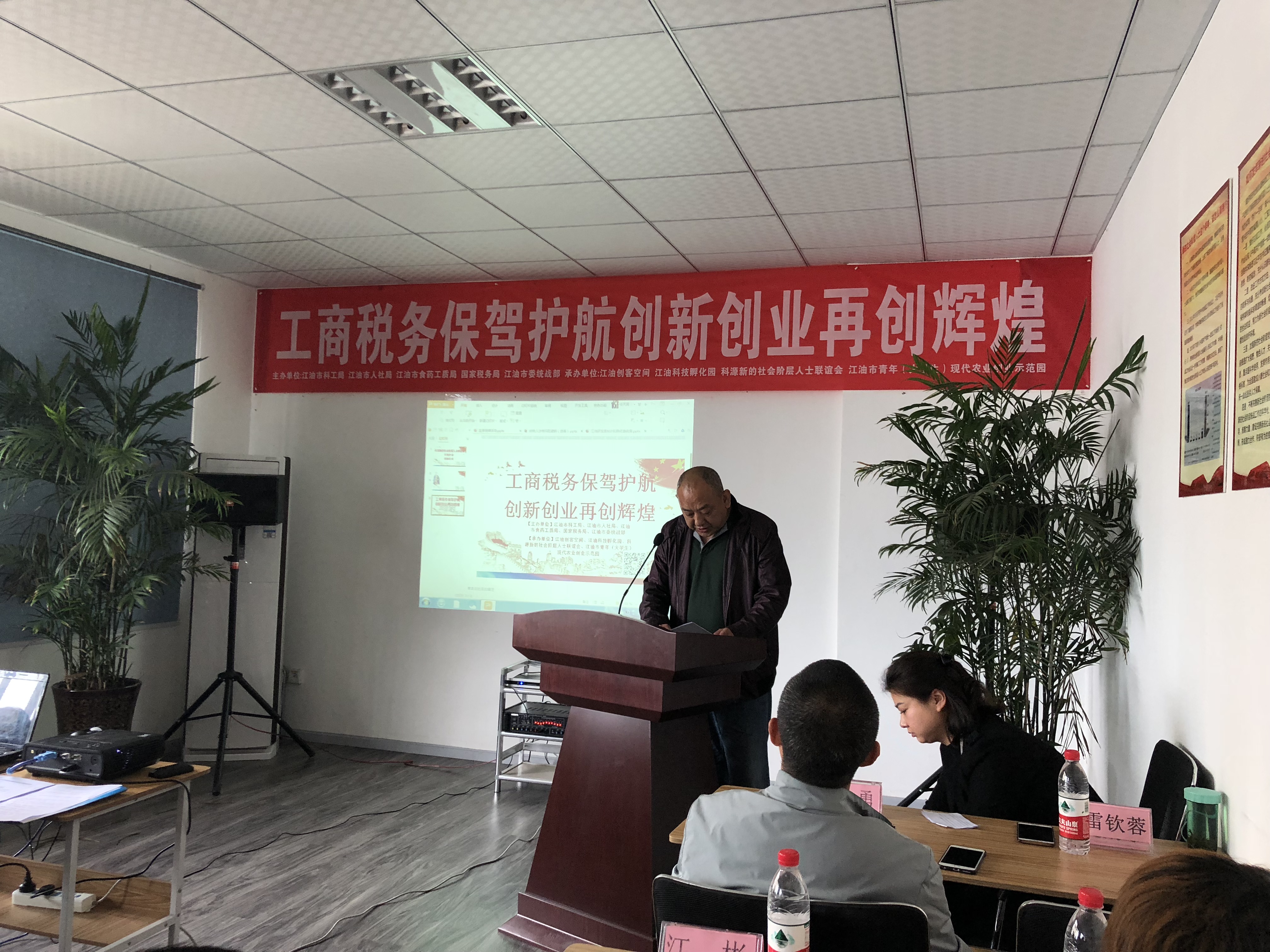 授牌結束后科源新聯會特邀江油市國家稅務局、江油市食藥工質局、江油市太平鎮食藥工質所,為江油分會會員企業進行了工商稅務保駕護航創新創業再創輝煌專題講座