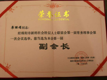 科源新聯(lián)會會長廖麗娟當選 綿陽市新的社會階層人士聯(lián)誼會第一屆常務(wù)理事會副會長
