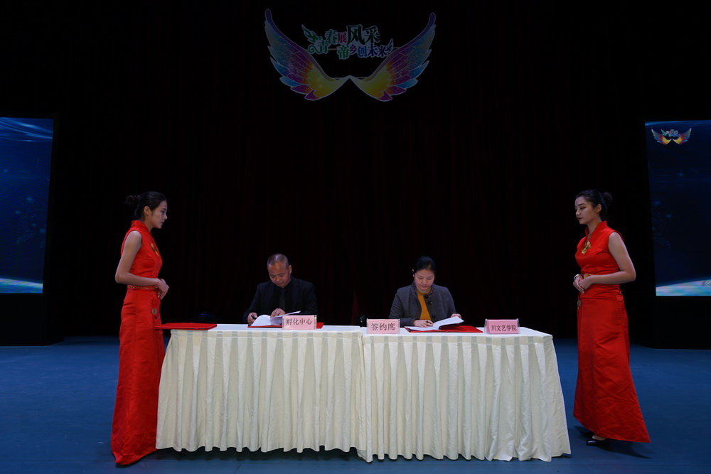 會上,四川省文化藝術學院與梓潼縣科技孵化中心簽訂校企戰略合作協議。