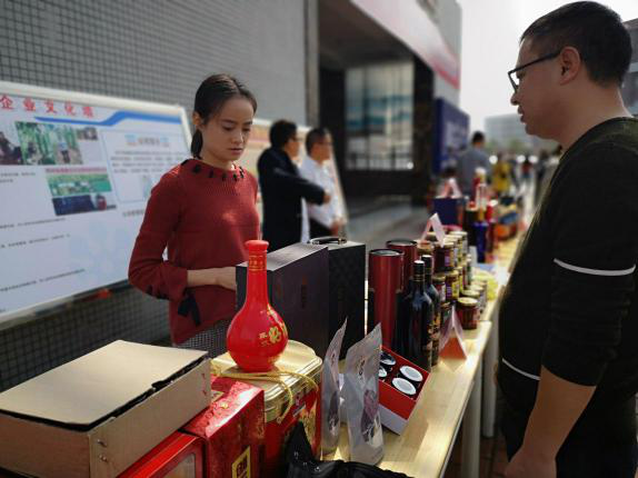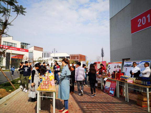 梓潼孵化中心在孵企業產品展示琳瑯滿目,種類繁多。涵媽面條、梓柏林木業門板、有機肥、將臺酒、潮服等20余種參展產品吸引了參會人員參觀選購。