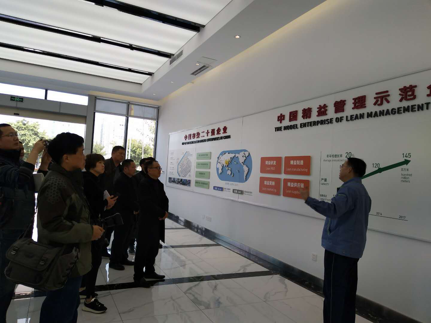 進入廠區后一個干凈整潔的企業便呈現在大家眼前,佳聯公司董事、副總經理石岷山全程對企業的發展歷程、產品類別、TPM和公司的公司先進管理進行了詳細的介紹,并帶領大家參觀企業發展展館、產品展館、展覽研發中心、檢測中心、生產車間、員工食堂、員工健身室。