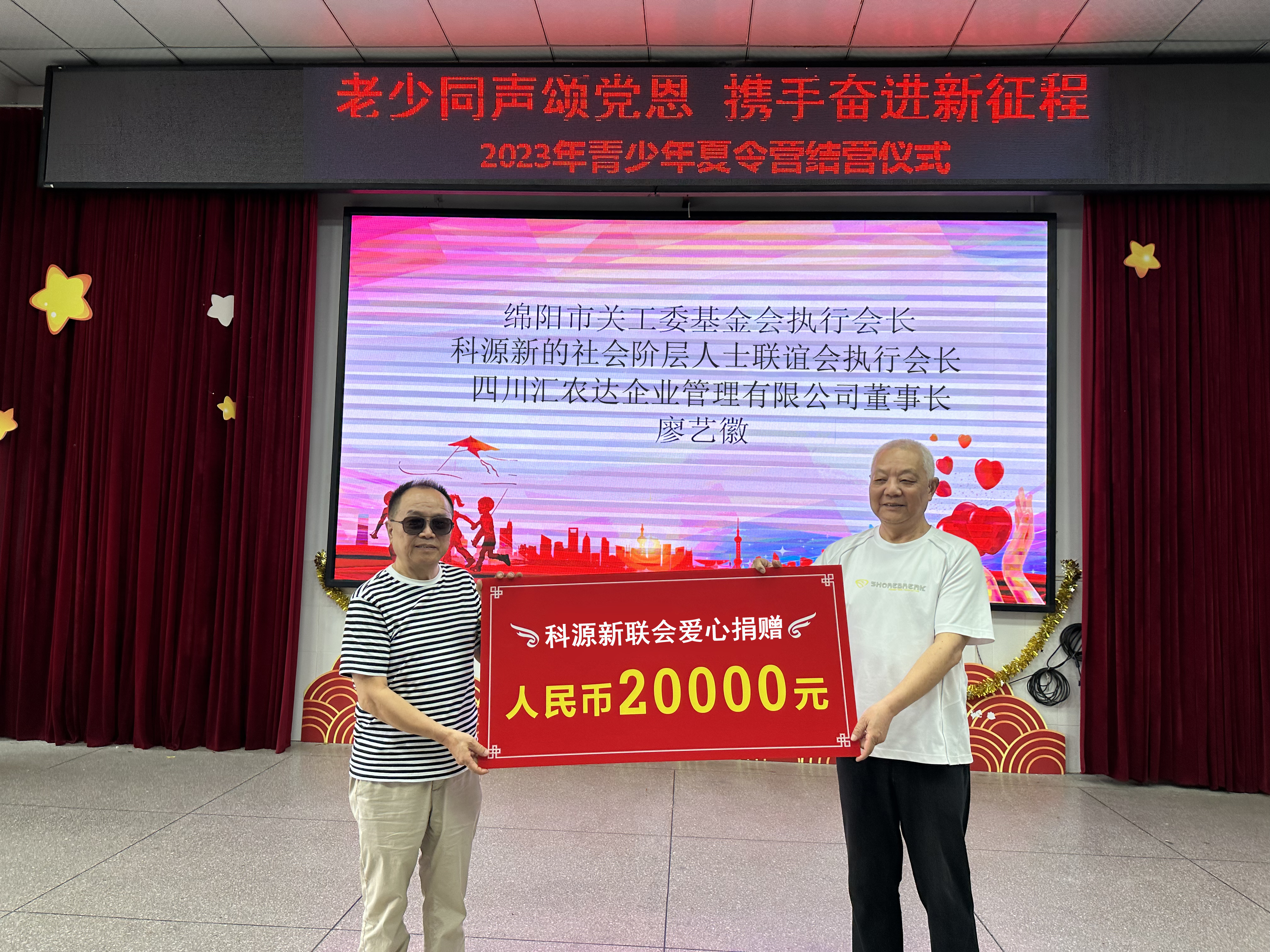 7月7日上午,由江油市舉辦的《老少同聲頌黨恩,攜手奮進新征程“2023年青少年夏令營結營暨愛心捐贈活動”》在江油市外國語學校舉行。科源集團董事長、科源新聯會名譽會長廖藝徽代表科源參與了本次捐贈并做重要發言。