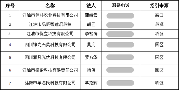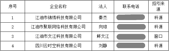 江油市科技孵化園五月招引情況統(tǒng)計表: