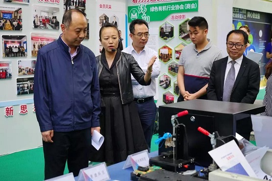 科源新聯(lián)會會長廖麗娟在同心創(chuàng)新創(chuàng)業(yè)示范基地向張明局長介紹孵化企業(yè)的成果精品