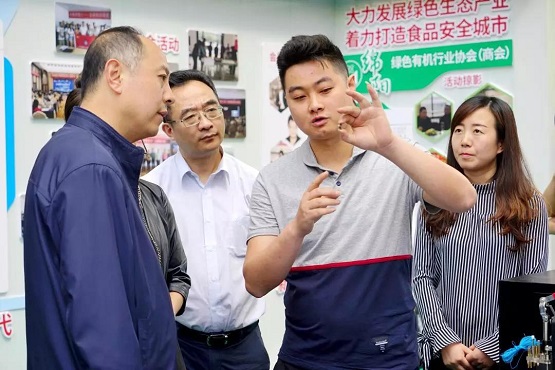 同心創(chuàng)新創(chuàng)業(yè)示范基地入孵企業(yè)比萊科技向張明局長介紹成果產(chǎn)品
